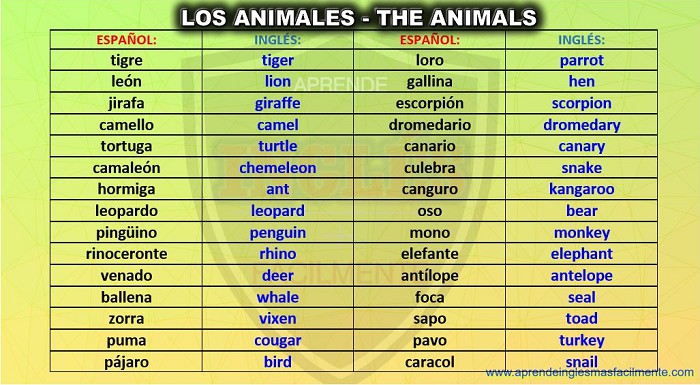 Ahora es tiempo de aprender sobre como escribir y pronunciar los nombres de los diversos animales, y luego formar expresiones con dichos nombres.